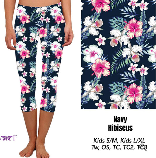 Navy Hibiscus Pocket Capri Leggings