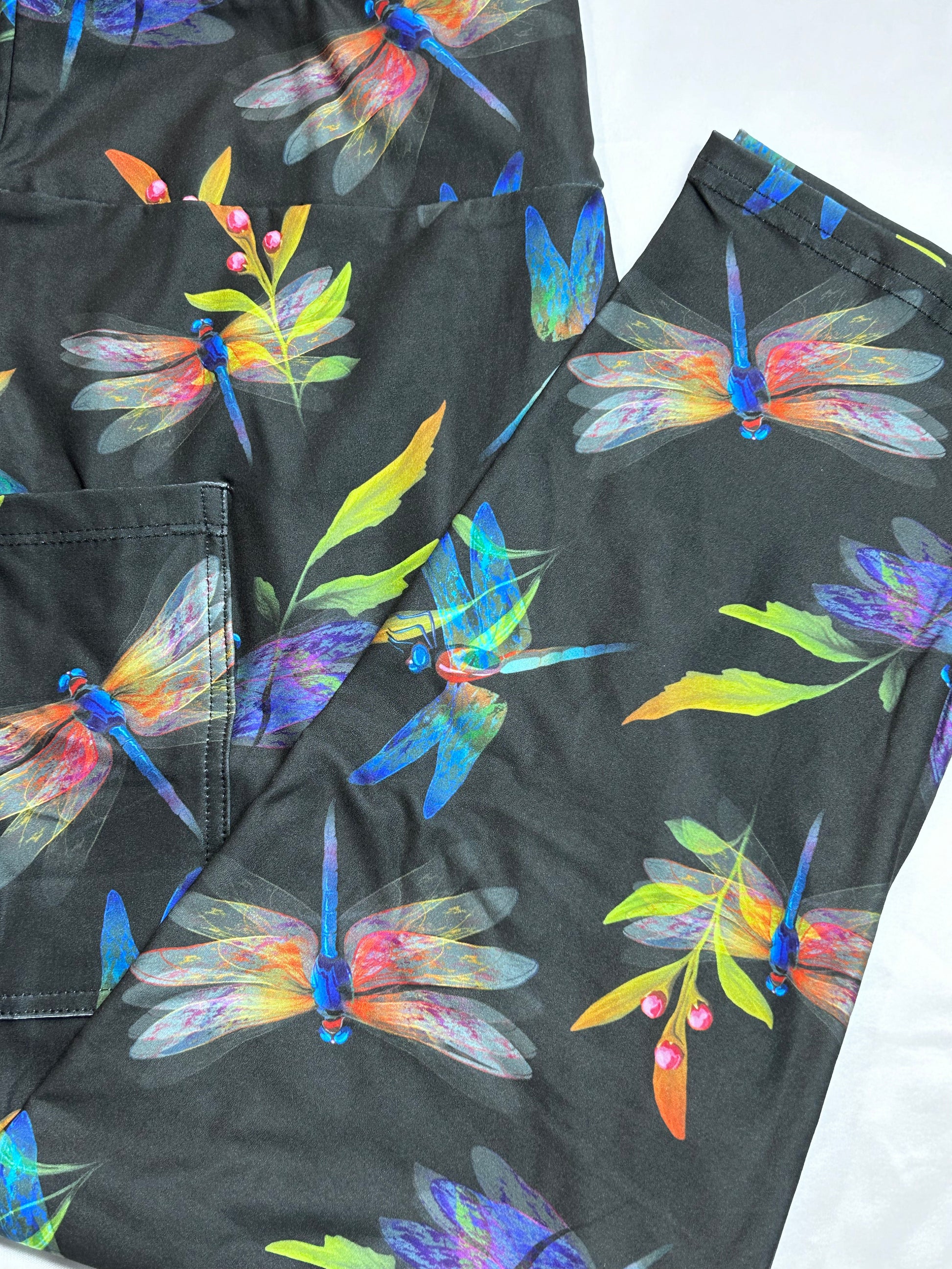 Colorful Dragonfly Capri Leggings WITH Pockets